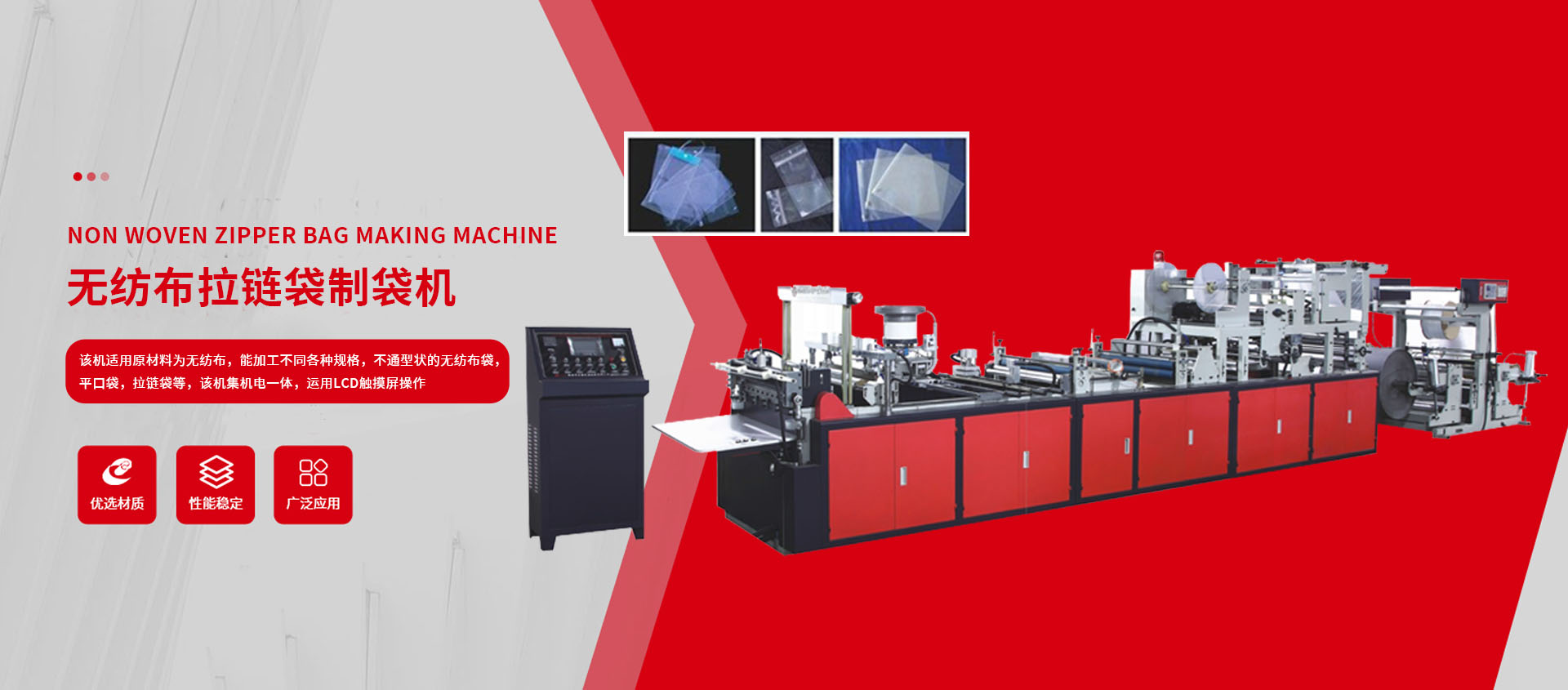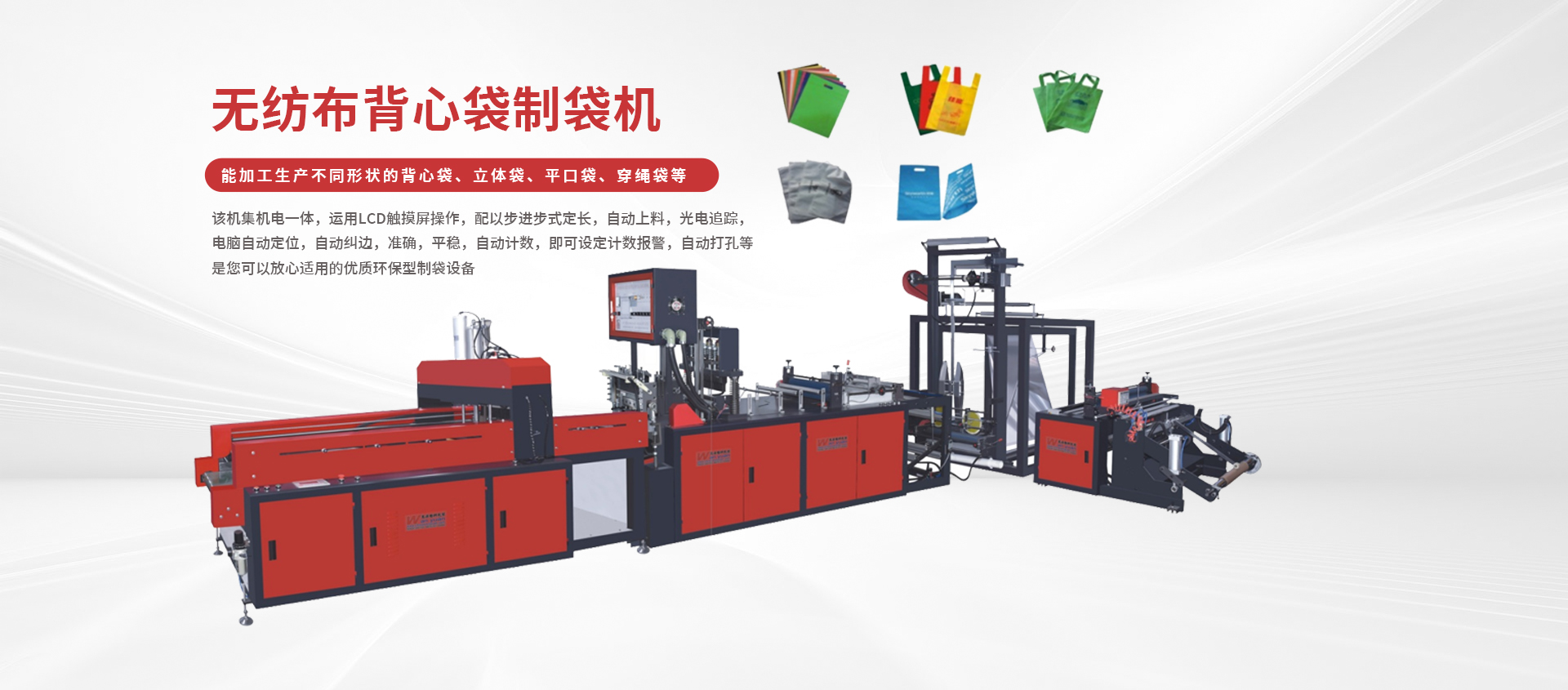 是一家多年專業制造成套系列軟包裝設備的企業,主要生產各種無紡布材料、OPP、PP、PE、PVC、POF、PET、降解膜等塑料薄膜的封邊制袋機、橫切機、分切機、印刷機、吹膜機組等配套設備,廣泛用于日用品、服裝、鞋類、文具、小五金、鮮花等產品包裝的生產設備。