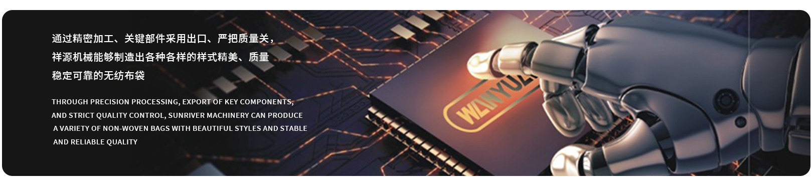 溫州祥源包裝機械有限公司(原瑞安市萬源包裝機械有限公司)地處浙南沿海,是一家具有多年專業制造成套系列軟包裝設備的企業。本企業現匯聚了一批從事設計、制造、檢測、調試的優秀人才。 公司專業生產全自動無紡布制袋機、自動上扣拉鏈袋制袋機、電腦熱切邊封制袋機、鮮花袋制袋機、高速筆袋制袋機、高低壓膜冷熱雙切制袋機、光點糾偏折膜收卷機組、橫切機、分切機、印刷機、吹膜機組等。產品主要用于各種無紡布材料、OPP、PP、PE、PVC、POF、PET、降解膜等塑料薄膜的封邊制袋,廣泛應用于日用品、服裝、鞋類、文具、小五金、鮮花等產品的包裝生產。